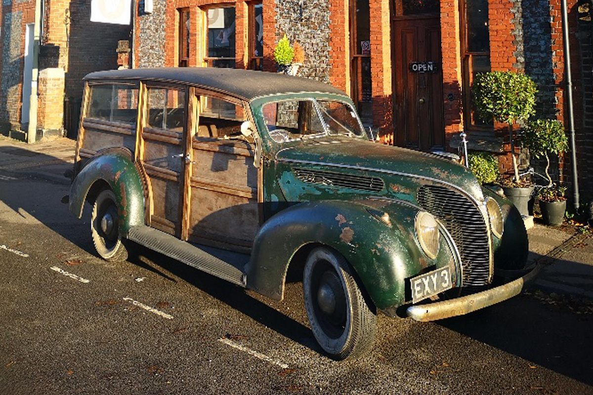 The car in question is a Ford Model 81A Deluxe Station Wagon, better known simply as the Ford Woodie, and it wears its years charmingly.